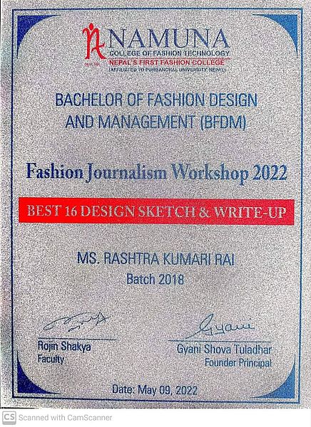 Unsere Absolventin Rashtra Kumari nahm am Fashion Journalism Workshop 2022 teil und hat einen Preis der "Best 16 Design Sketch & Write-Up" gewonnen. Sie ist ein weiterer lebender Beweis dafür, dass es neben Schule auch noch weitere wirklich wichtige Bereiche im Leben gibt!