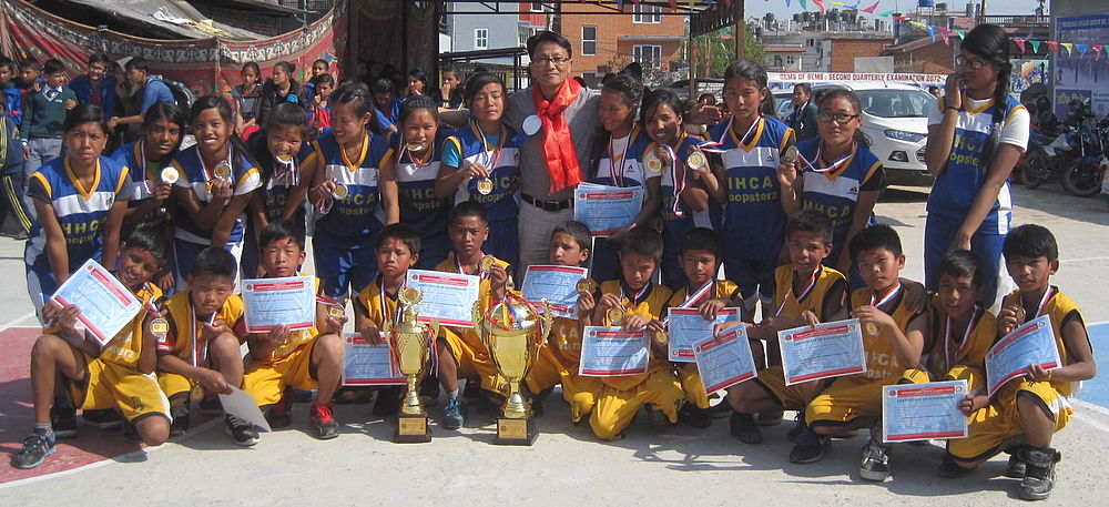 Mehrmals pro Woche werden sie morgens vor der Schule von unserem allseits beliebten Coach Sagar Shrestha trainiert. Was sie aber richtig gefährlich macht, ist ihre Leidenschaft für’s Basketballspielen: Sie spielen quasi in jeder freien Minute und üben Passspiel, Freiwürfe oder das Eins gegen Eins bis zur Perfektion. Dieser Einsatz zahlt sich auch aus und zeigt sich in den hervorragenden Ergebnissen. Darüber hinaus haben die HHCA Hoopsterz eine Geheimwaffe: Sie sind kein Team. Sie sind eine Familie. Ohne ausgeklügelte Basketball-Routinen zu kennen oder Team Moves einzustudieren, bewegen sich unsere Jungs und Mädels wie ein Organismus und zeigen Profi-Teams von Kathmandus Elite-Schulen, wie man richtig Basketball spielt. Die Spiele unserer Basketball-Cracks sind meist ein wahres Highlight, vor allem die Finals. Die Teams werden vor Ort von mitkommenden Mitschülern angefeuert und die Sprechgesänge sorgen für unglaubliche Stimmung. Jeder Punkt wird mit Applaus und Jubel gefeiert und wenn es einmal nicht so gut läuft, sorgt die ungebrochene Euphorie für Motivation, um wieder stärker zu werden und über sich hinauszuwachsen. Am Rückweg zur Schule verwandeln die Schüler das Fahrzeug in einen Partybus und feiern ihre Erfolge lautstark auf der gesamten Fahrt. Die einzigartige Stimmung im Team und in der gesamten HHCA suchen in Kathmandu ihresgleichen und sind mit Sicherheit ein weiterer Grund, warum die Hoopsterz Turnier für Turnier andere Teams in die Schranken weisen.